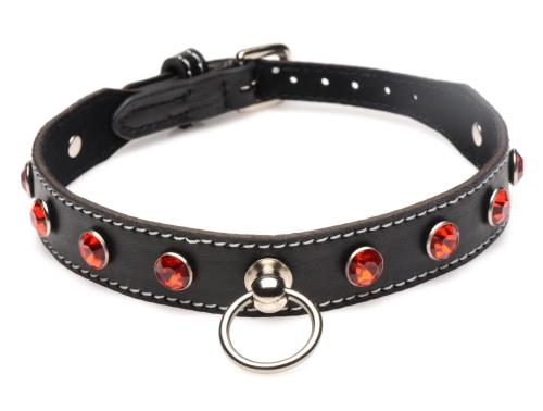 Diamanten Choker Met O-Ring – Zwart/Rood