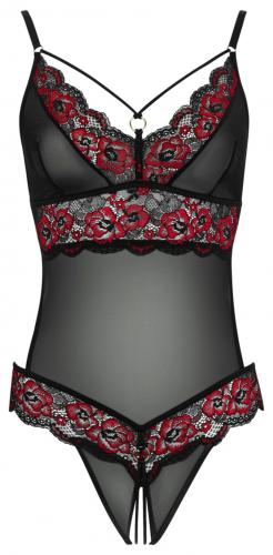 Kanten Stringbody Met Open Kruisje – Zwart/Rood